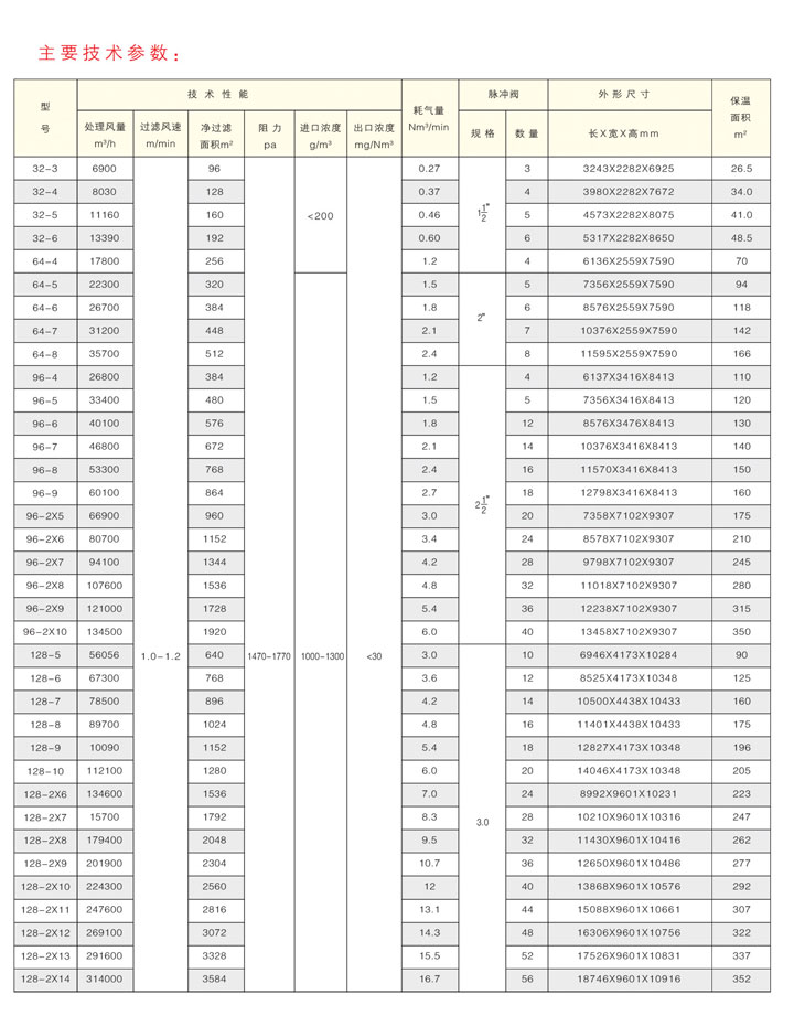 結構特點 采用分室、箱式結構、脈沖閥用量少、壽命長,采用進口脈沖閥動作可達100萬次以上,并實現(xiàn)了不停機檢修。 外濾式,采用大口徑脈沖閥,高壓、小氣量脈沖清灰清灰強度高,需壓縮空氣(0.5一0.7Mpa)。 分室隔離清灰一離線清灰,清灰徹底、效果好,減少二次揚塵,阻力小、能耗低,濾袋平均壽命可達兩年以上。 換袋及檢修在頂部進行、干凈、方便、快捷。 程序控制器采用單片機或PLC控制,具有運行穩(wěn)定可靠,抗干擾性強等特點。PLC控制器可根據用戶要求配置,設計成具有與其它可分編程控制器以上位機聯(lián)網功能。 系列化設計,多種規(guī)格可滿足不同現(xiàn)場情況的處理需要。 設備總體結構緊湊合理,占地面積小。