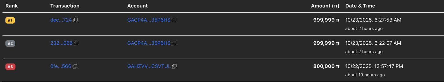 Pi 網(wǎng)絡(luò)上的大額交易。來(lái)源:PiScan