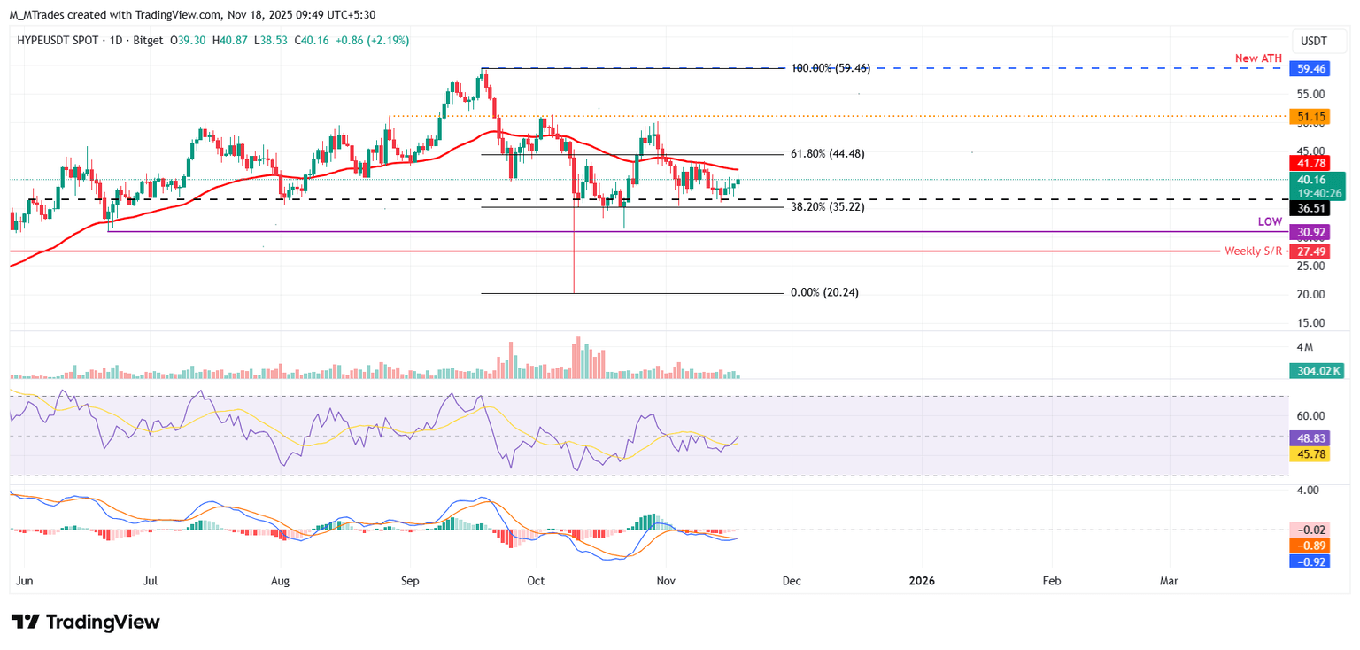 Hyperliquid 的價格在周五重新測試 36.51 美元的日內(nèi)支撐位后反彈,并在接下來的三天內(nèi)上漲了近 5%。截至周二發(fā)稿時,HYPE 繼續(xù)上漲,交易價格高于 40 美元。
