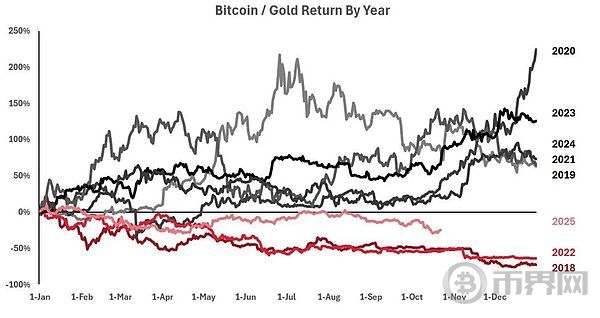這圖讓教鏈過目難忘的地方在于,它如此完美而大聲地在講,2025年看起來好像是和2018年、2022年一樣,是個(gè)熊市年。